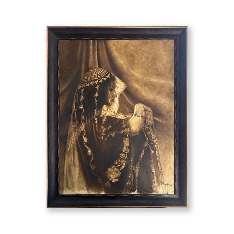 Oil on canvas. Canvas 75 cm width by 100 cm height.
